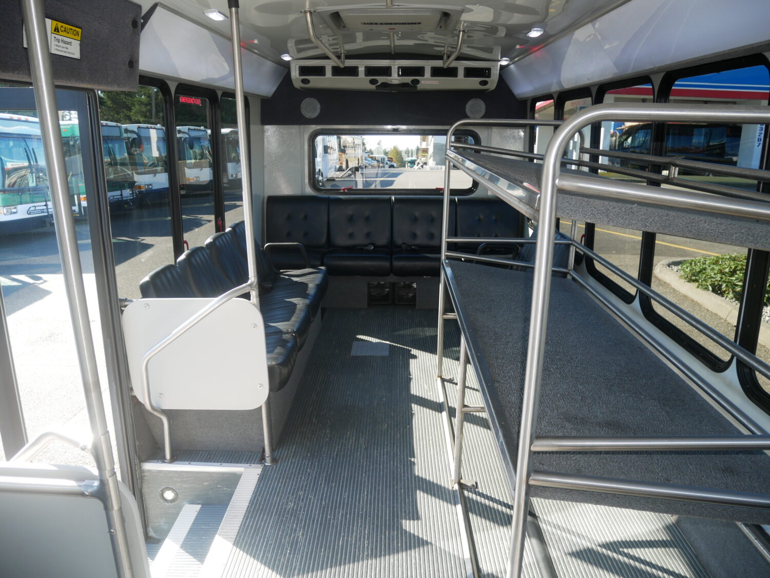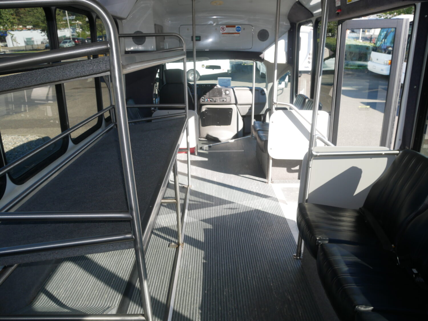 | Misc. Options & Features | Extra Wide Interior Luggage Rack, Extra Wide Mid-Ship Electric Passenger Entry Door, Grey Rubberized Flooring with Ribbed Aisle Way, Multiple Ceiling Grab Rails |